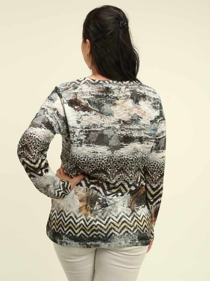 Abstract Print Rhinestone Top