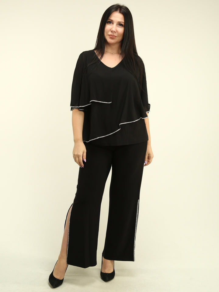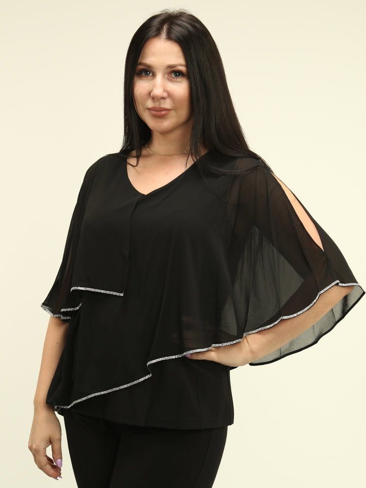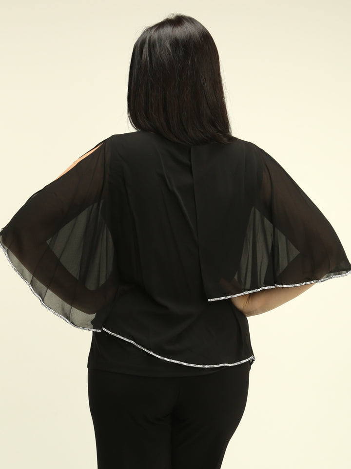 Asymmetric Rhinestone Trim Chiffon Overlay Blouse