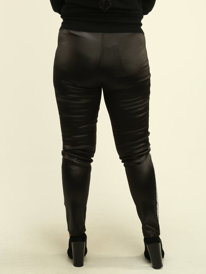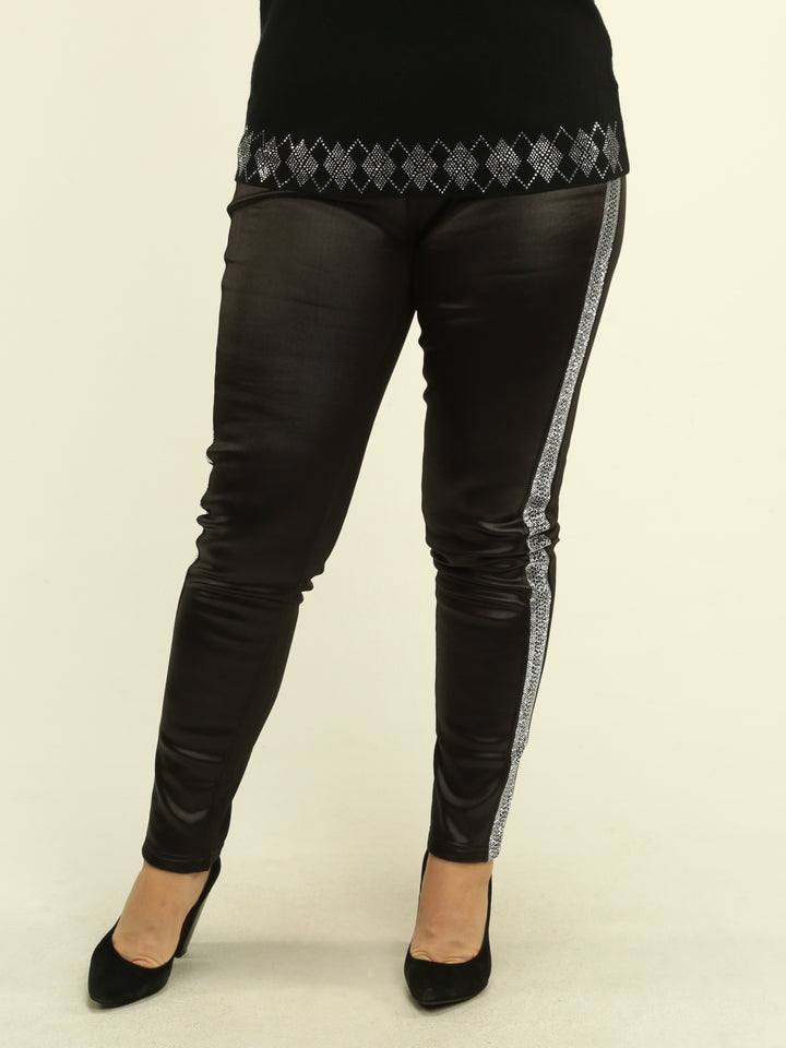 Turn up the edge and sparkle with our embellished faux leather fleece-lined pants—sleek, warm, and perfect with boots or heels for effortless glam.