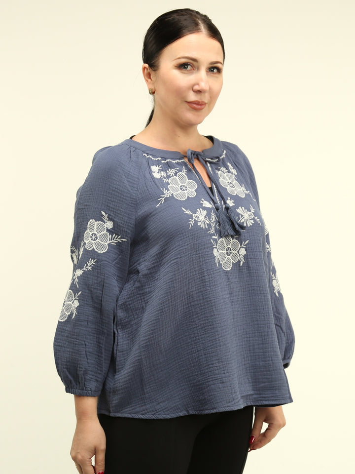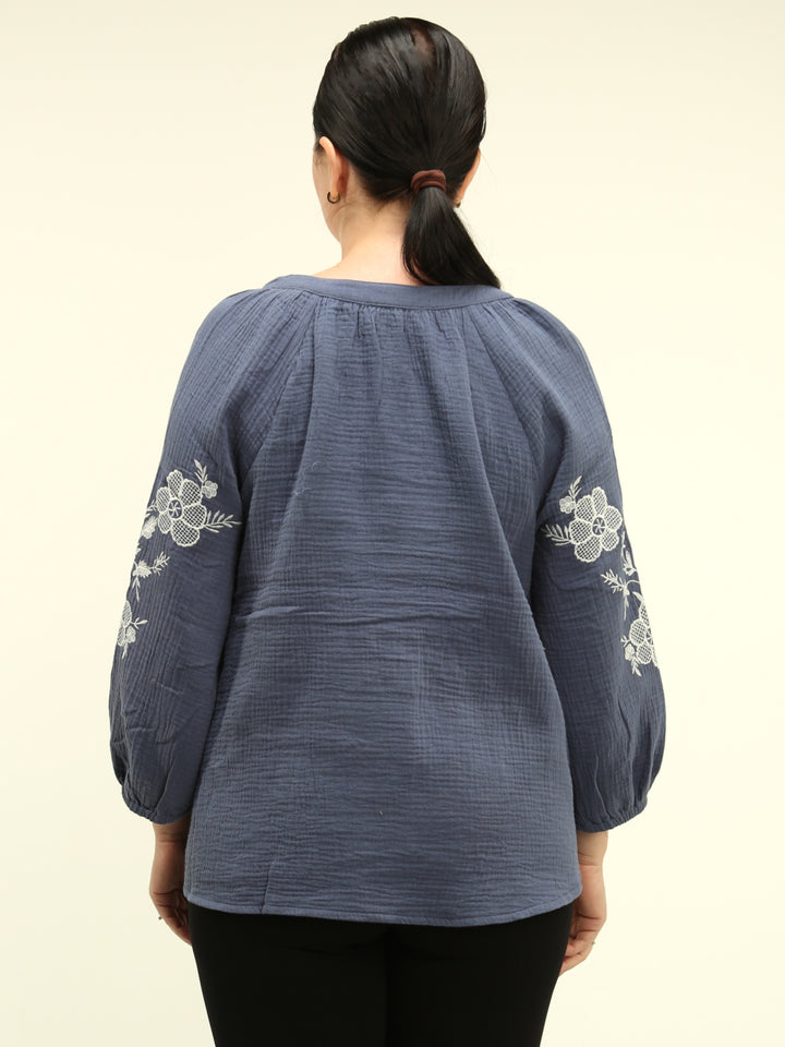 Breeze through your day in our Floral Embroidered Tie-Neck Blouse—lightweight, feminine, and effortlessly elegant for dressing up or down.