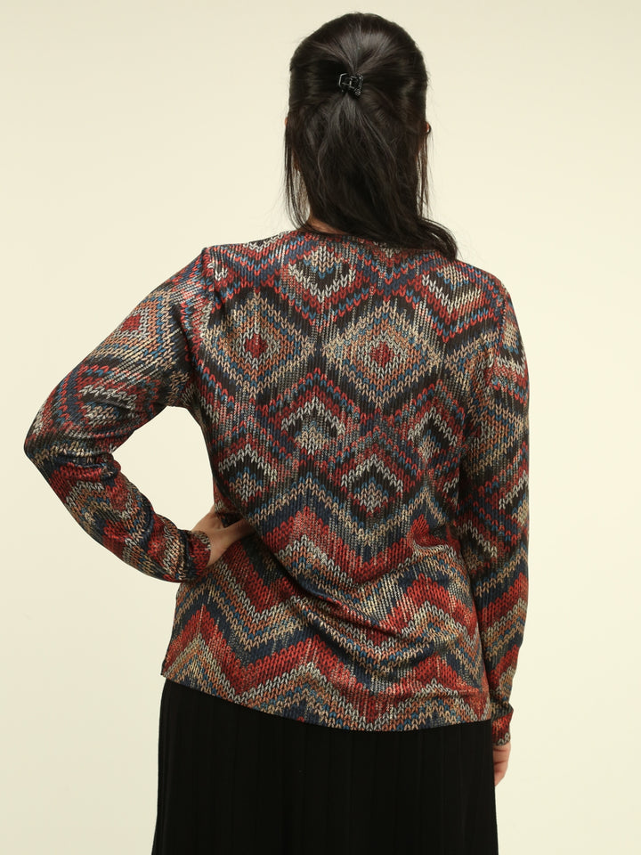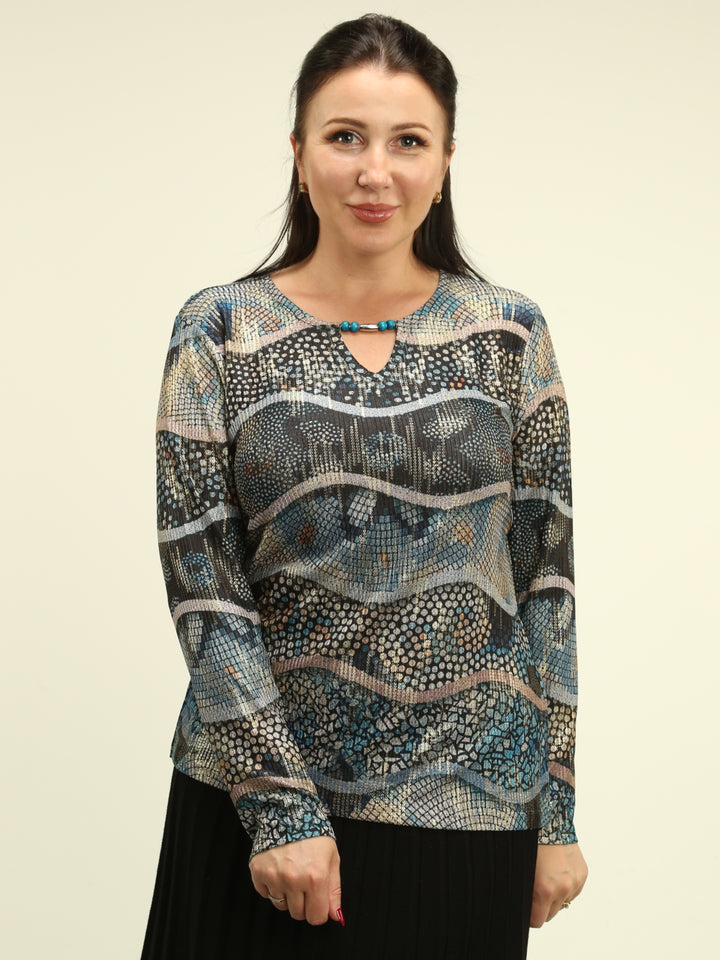 Step into timeless elegance with our Foil Print Keyhole Neckline Top, designed to elevate your everyday style with just the right amount of shimmer.