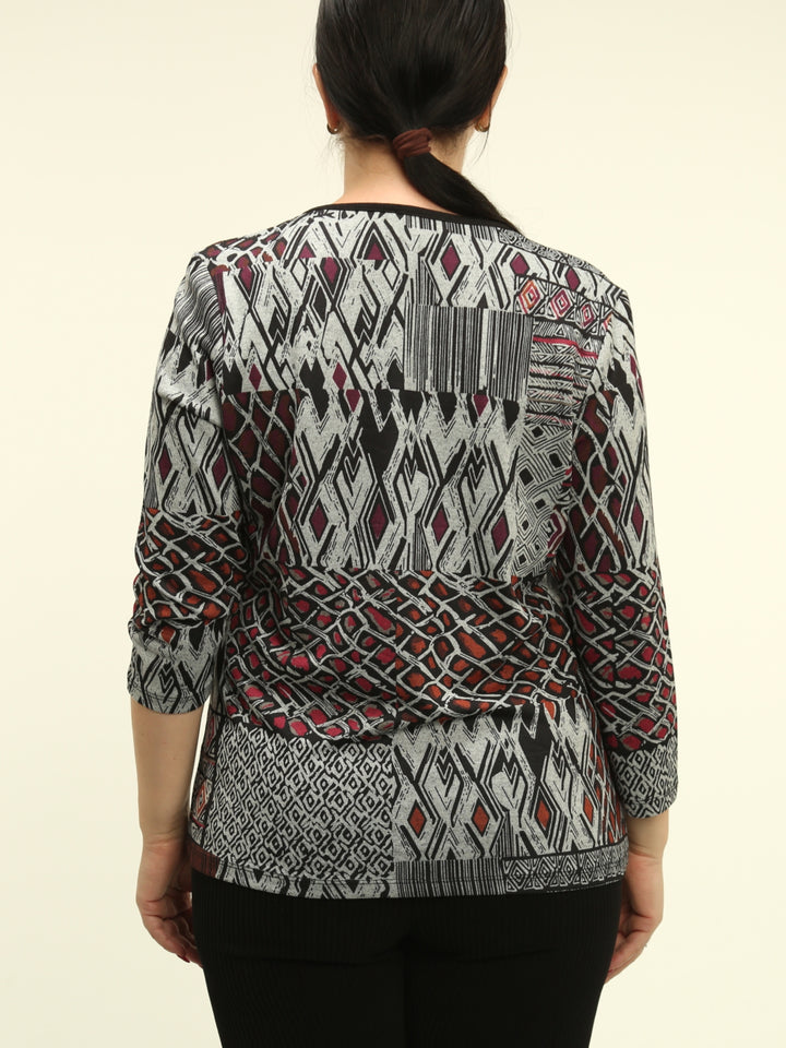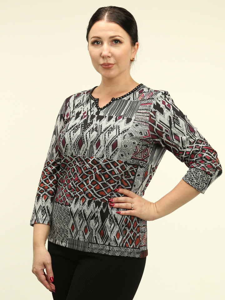 Geometric Pattern Notch Neck Top