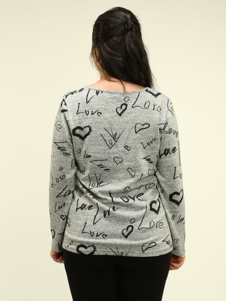 Cozy meets playful in our Graphic Love Print Top—perfect for casual days or layering. Style it effortlessly with your favorite jeans or pants.