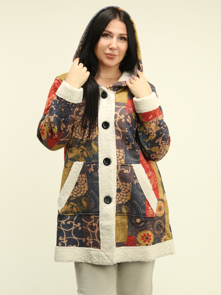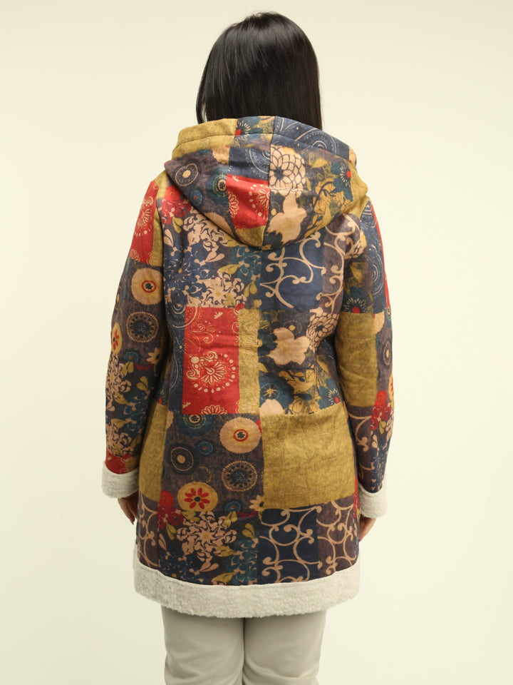 Stay warm in style with our Patchwork Hooded Fleece Coat — a cozy statement piece that adds artistic flair to your cold-weather wardrobe.