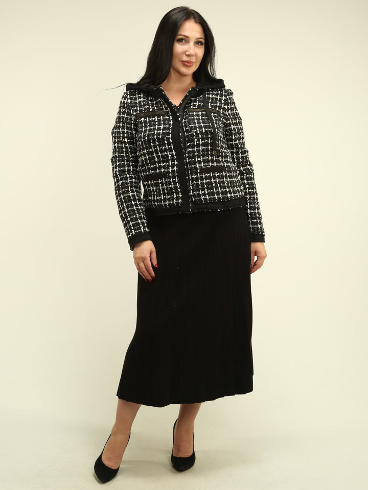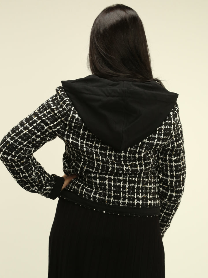 Plaid Hooded Boucle Jacket