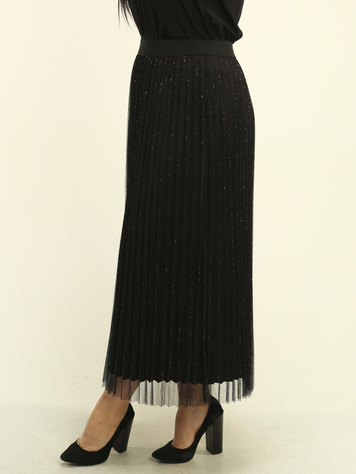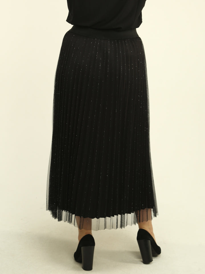 Turn every outfit into a statement with our Pleated Mesh Overlay Skirt — elegant, comfortable, and effortlessly transitioning from daytime outings to chic evening events.