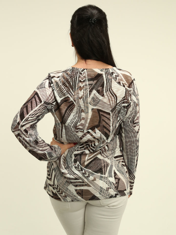 Make a stylish statement in this Rhinestone Abstract Print Top —perfectly balanced for everyday elegance and comfort. Effortlessly pairs with your favorite denim.