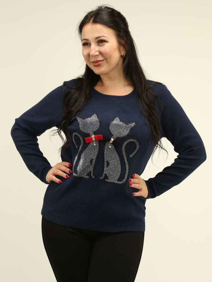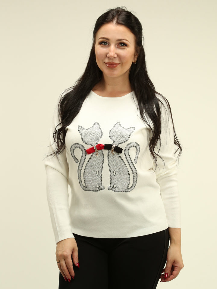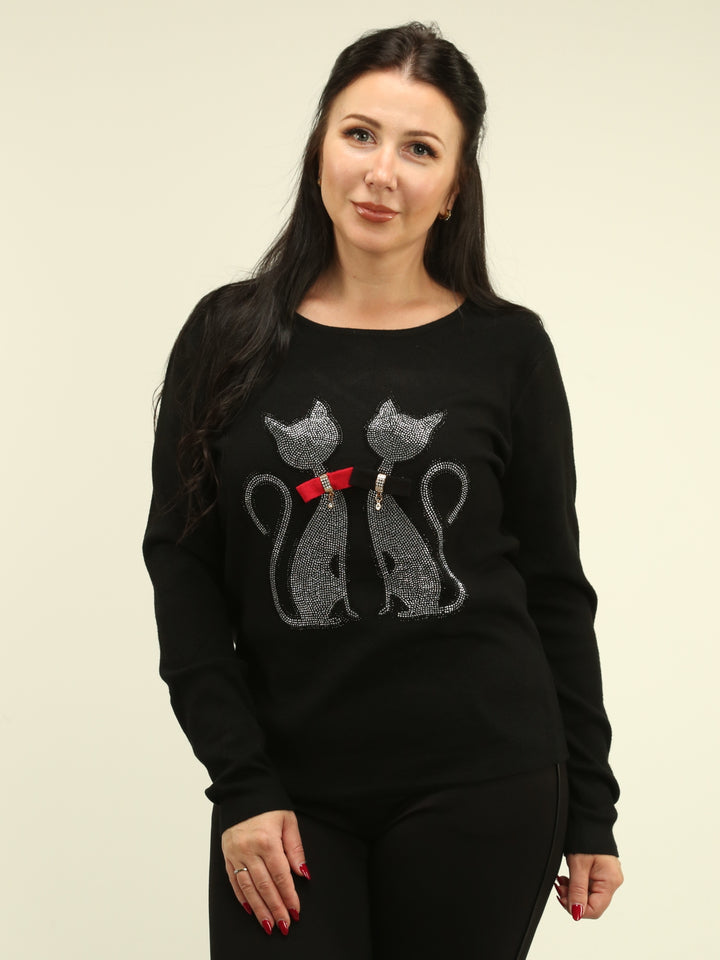 Rhinestone Cat & Bow Tie Embellished Sweater