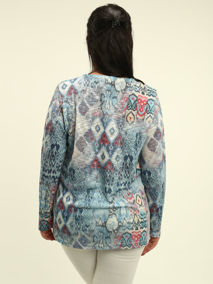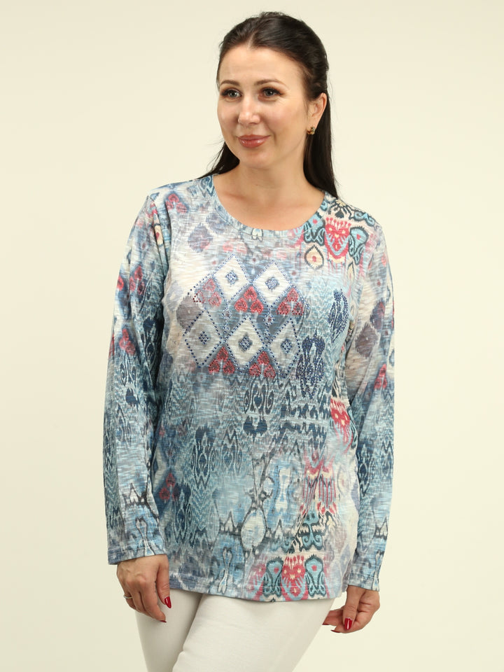 Rhinestone Diamond Ikat Print Top