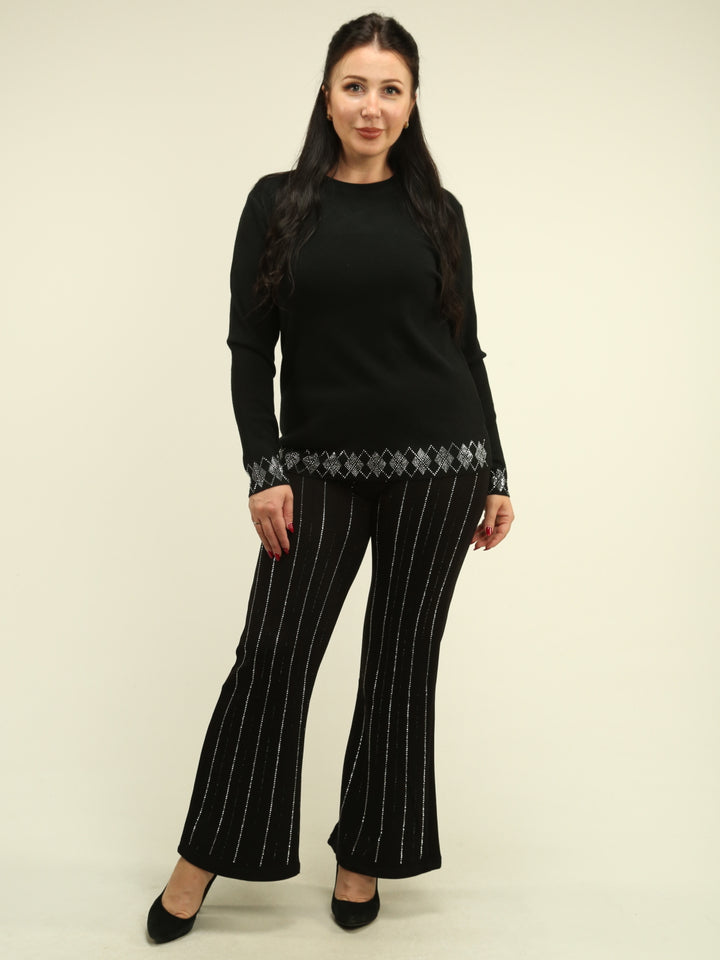 Elevate your wardrobe with our Rhinestone Flare Pants — featuring shimmering details and a flattering fit, perfect for nights out, special events, or making a bold statement.