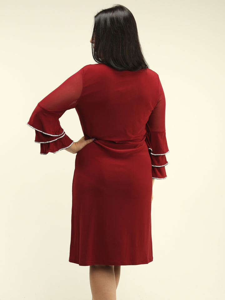 Rhinestone Tiered Sleeve Dress