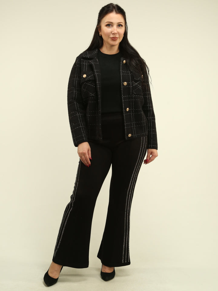 Step into sleek sophistication with our Rhinestone-Striped Flare Pants—crafted to flatter, shimmer subtly, and elevate your style from daytime chic to evening allure.