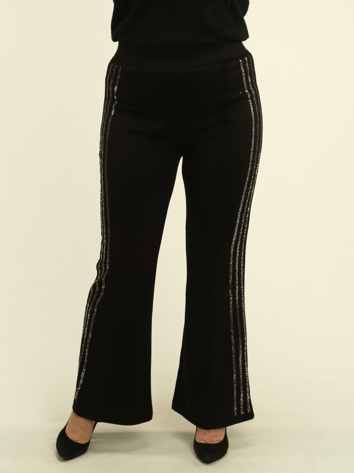 Rhinestone-Striped Flare Pants
