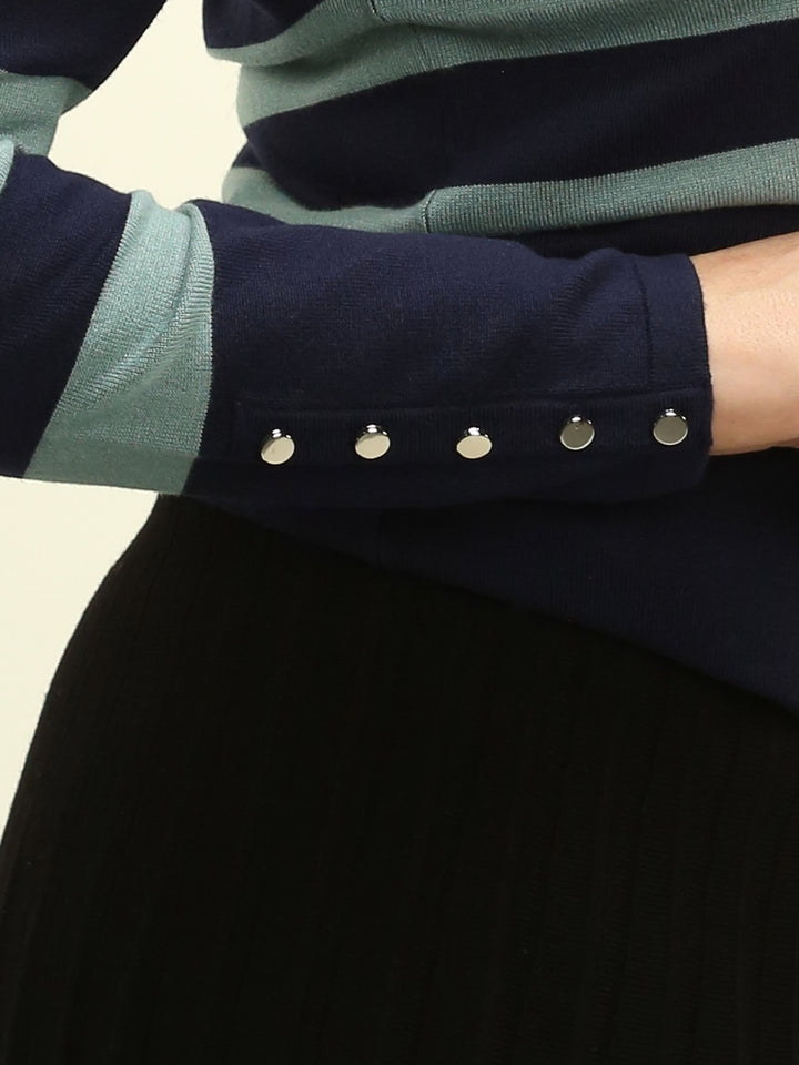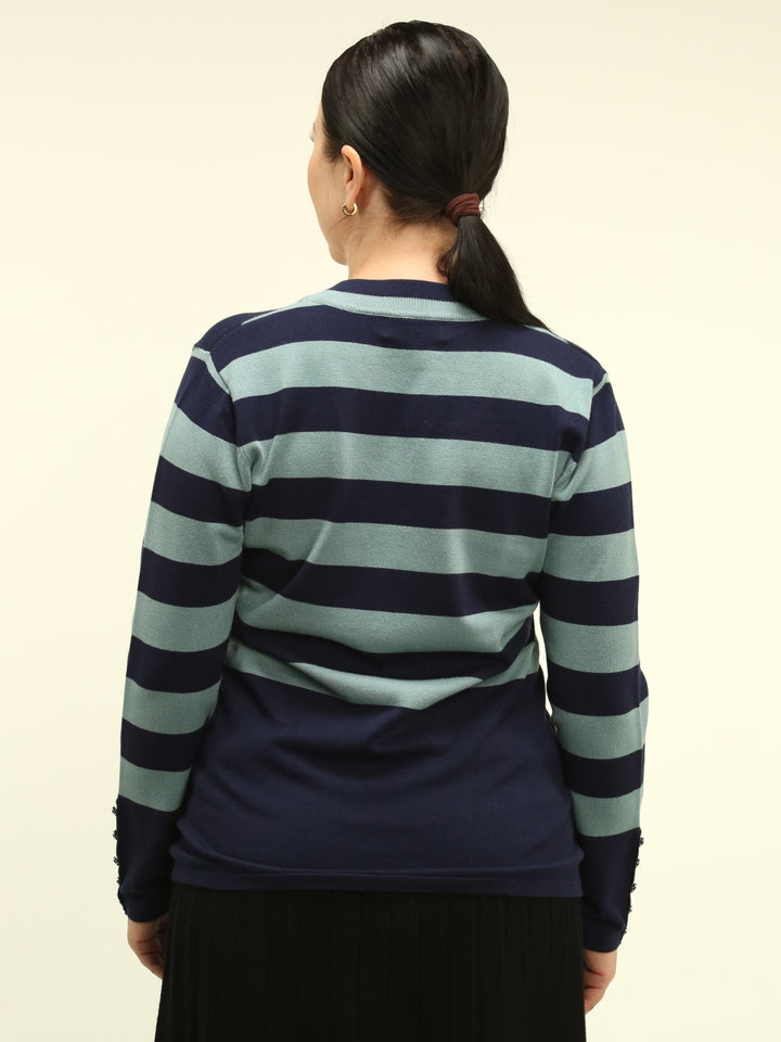 Chic and cozy, this Stripe Block V-neck Sweater delivers effortless style and layering comfort—perfect for crisp mornings, cool evenings, and polished everyday looks.