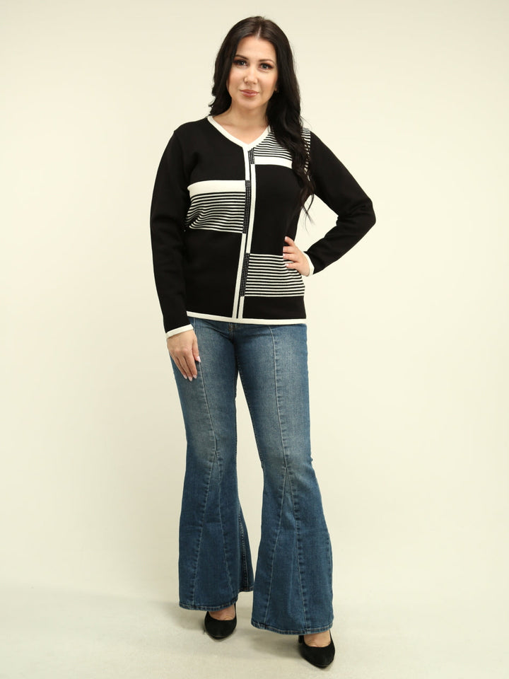 Turn heads this season with our Stripe Rhinestone V-Neck Sweater—effortlessly elegant, cozy, and versatile. Pair it with your favorite jeans and boots for chic style.