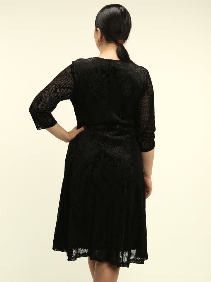 Embrace timeless style and comfort with our Velvet Mesh Floral Dress—rich in texture and warmth, it's perfect for special occasions or effortlessly chic everyday wear.